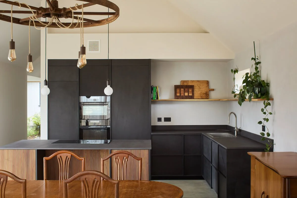As with all of our new build projects, Stable House combines a fabric-first approach with natural materials in an attempt to minimise the impact of construction and ensure a low energy demand in occupation. The building incorporates a highly insulated timber frame and triple glazed composite windows, coupled with an air-source heat pump and mechanical ventilation and heat recovery (MVHR) system.